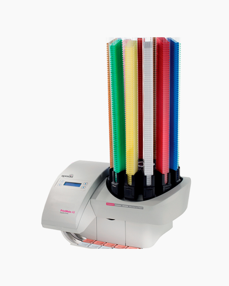 Elimine o desperdício e agilize o processo de etiquetagem imprimindo cassetes sob demanda na estação de bilheteria com a Impressora de Cassetes Epredia ™ PrintMate ™ AS